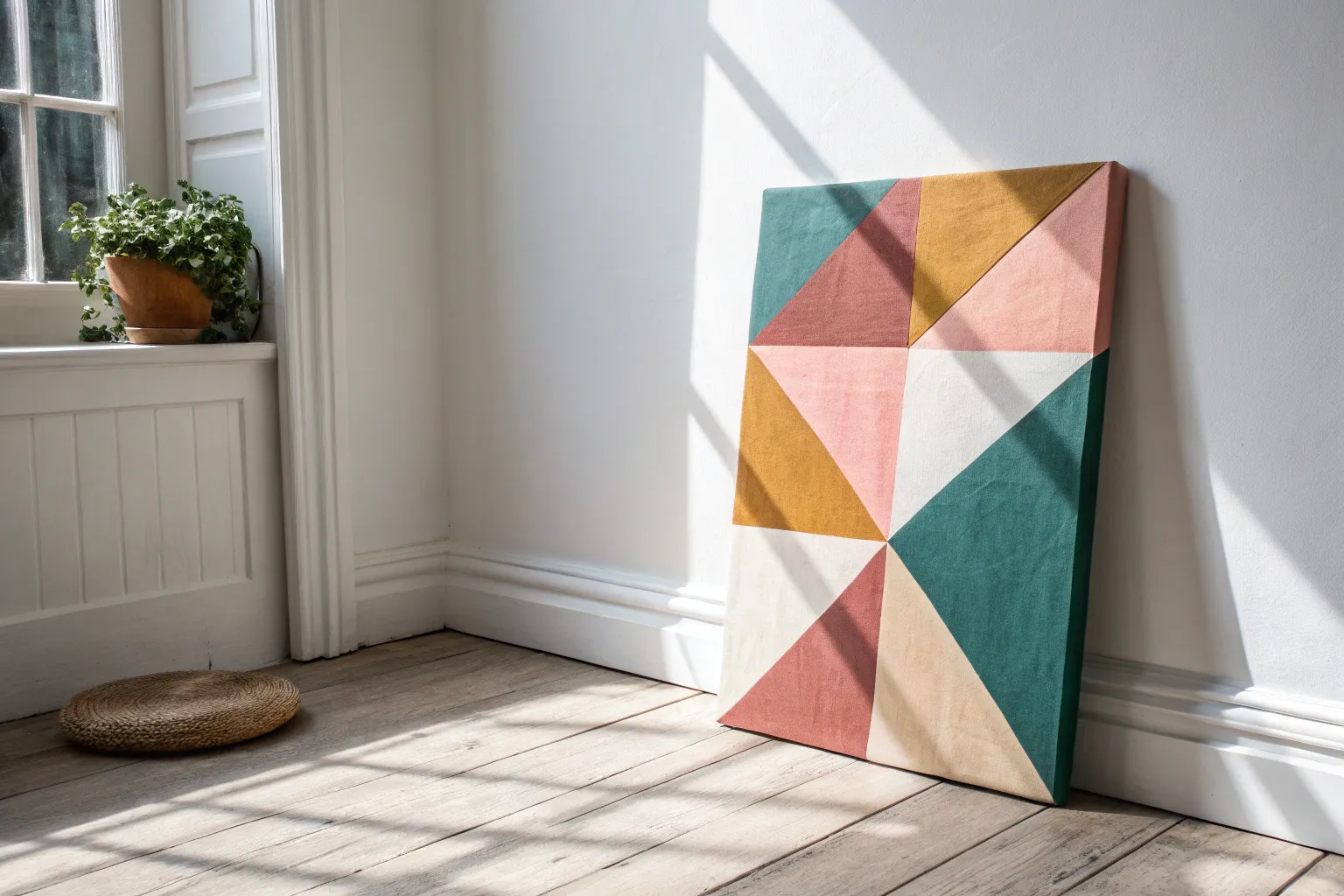 Transform a simple wooden panel into a striking piece of modern art using crisp lines and bold colors. This geometric block design relies on the magic of painter’s tape to create perfect separation between shapes, resulting in a professional-looking finish that is surprisingly simple to achieve.