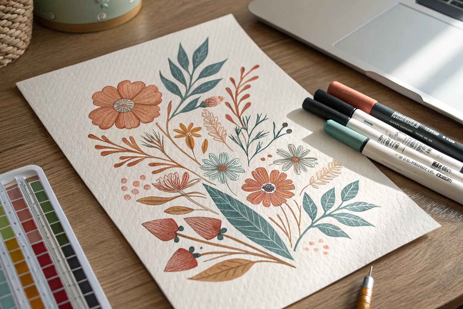 Try using a white acrylic marker to add tiny, sharp highlights on the glossy parts of the vase right at the end for an extra 3D ceramic effect.