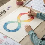 Identify the blocks that contain curves—specifically the quarter-circles in the corners and center. Use a compass set to width of your grid square, or a circle stencil, to sketch these dynamic ‘pie slice’ shapes. -
