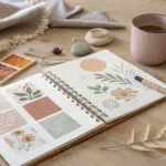 Embrace the beauty of meaningful shapes with this clean, earthy geometric composition that balances structure with organic texture. By using a limited palette of charcoal, terracotta, and peach, you’ll create a striking grid-based design that feels both retro and undeniably modern.