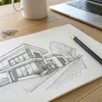 Begin by using your ruler to lightly draw a large square in the center of your sketchbook page. Ensure there is an even margin of white space around the edges. -