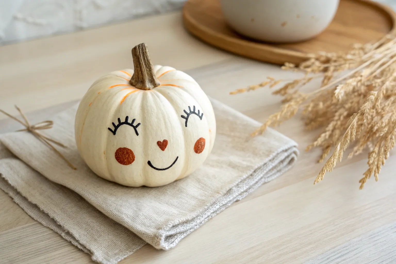 A sweet baby handprint pumpkin keepsake in soft neutrals, perfect for minimalist fall memories.