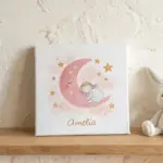 This enchanting canvas captures the magic of a storybook night with a deep teal sky, puffy clouds, and a sweet little cottage atop a rolling green hill. Its generous sky area and rolling hills act as a perfect backdrop for baby shower guests to sign their names or leave little well-wishes among the stars.