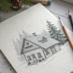 Lightly sketch a sloping horizon line across the lower third of your paper using an HB pencil. This slope will create the snowy hill the cabin sits on. -