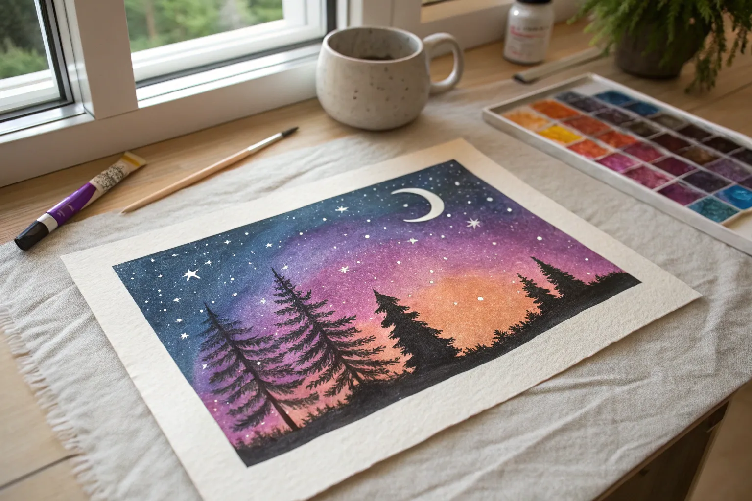 Hang your stunning nightscape and enjoy the glow of your handmade galaxy