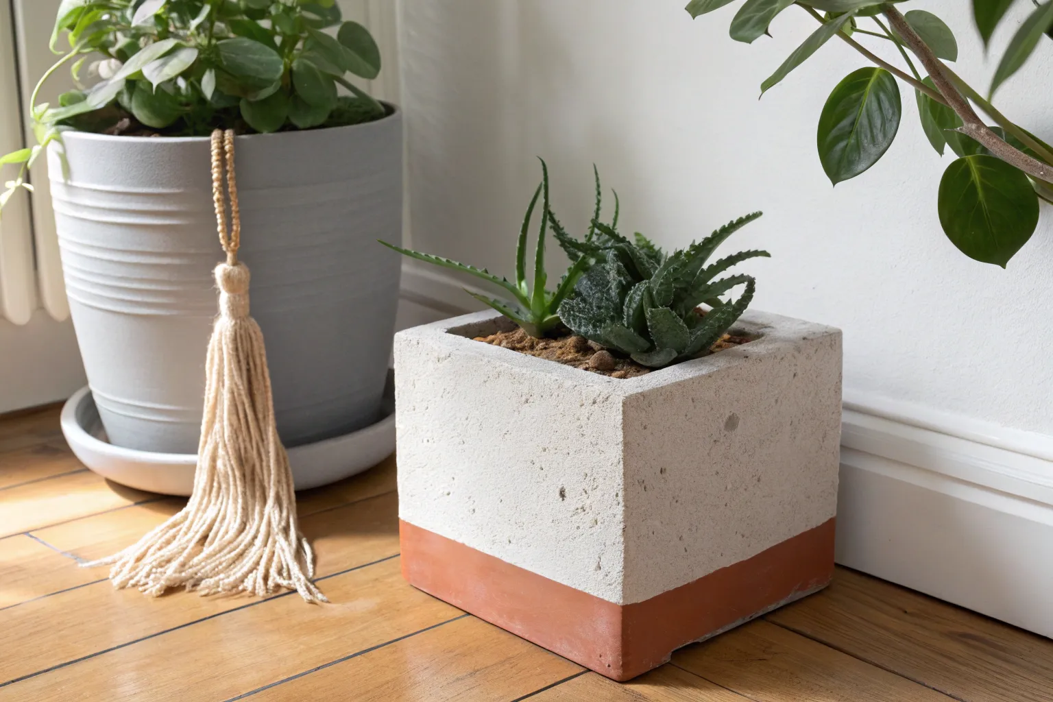 Transform a plain cinder block wall into a vibrant architectural feature with this bold color-blocking technique that mimics the warm hues of a desert sunset. By combining deep terracotta, coral, and cream with a striking teal accent, you’ll create a modern, structured look that instantly upgrades your outdoor space.