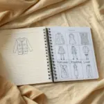 - Spiral-bound sketchbook with tan/toned paper and an attached ribbon marker/string