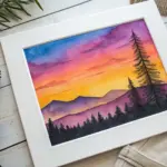 - Watercolor paints: Indanthrone Blue, Ultramarine, Quinacridone Rose, Cadmium Orange, Burnt Sienna