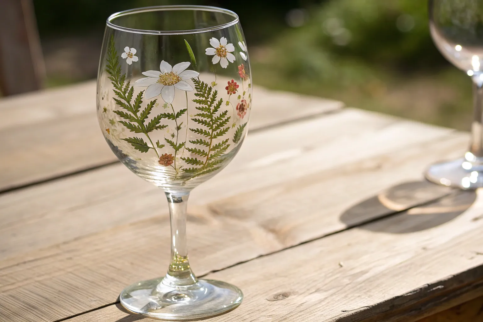 Capture the warmth of a summer afternoon with this cheerful floral design that brings a wildflower meadow right to your drinkware. The combination of delicate white petals and wispy greenery creates an elegant look that is surprisingly easy to master.