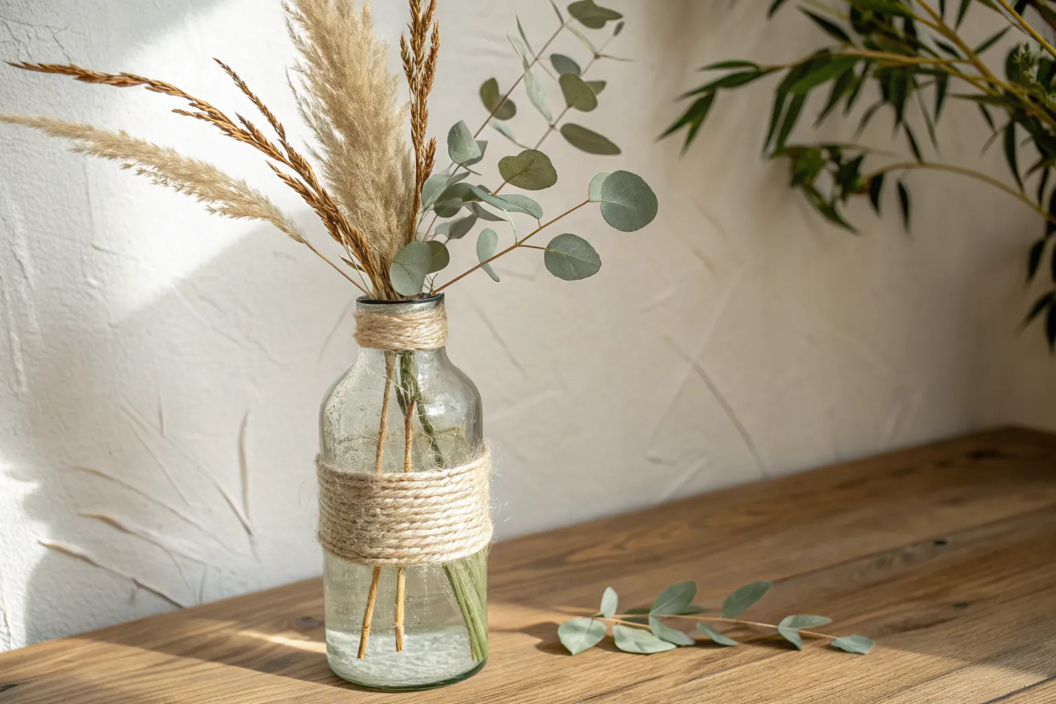 Transform ordinary glass recyclables into stylish, high-end decor with a soft, chalky finish. This project uses a clever textural paint technique to give bottles a beautiful, stoneware-like appearance perfect for displaying dried botanicals.
