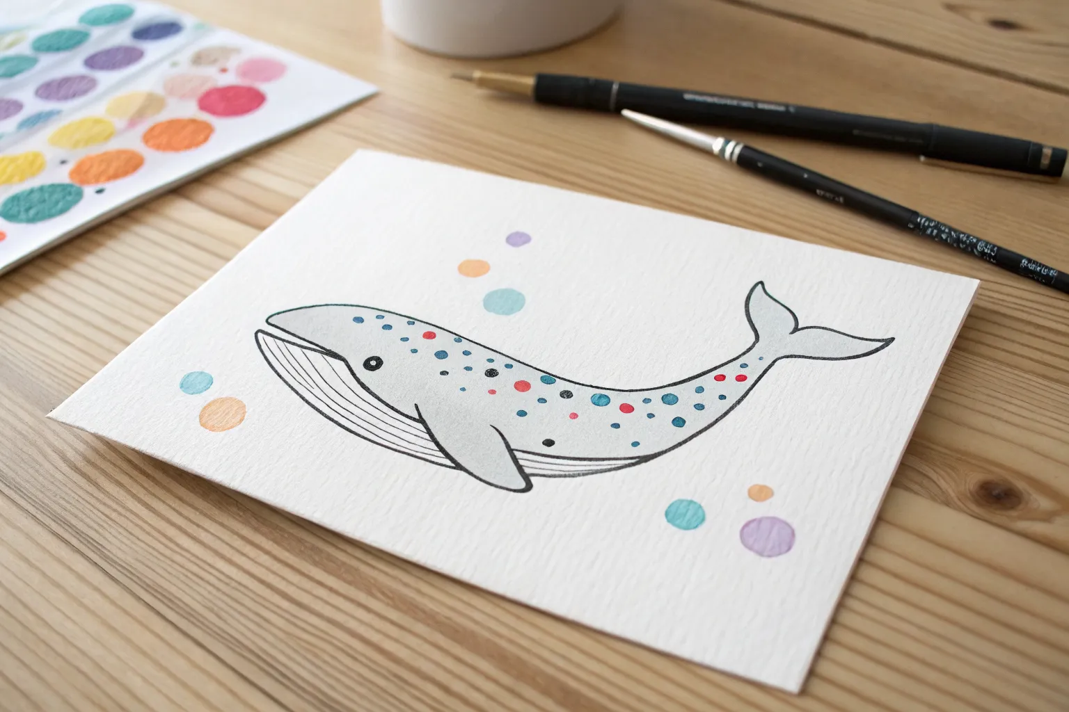 To give the artwork a finished feel without coloring the whole background, create a color palette row at the bottom right. Use a large brush or your fingerprint to stamp four or five circles in different colors. -