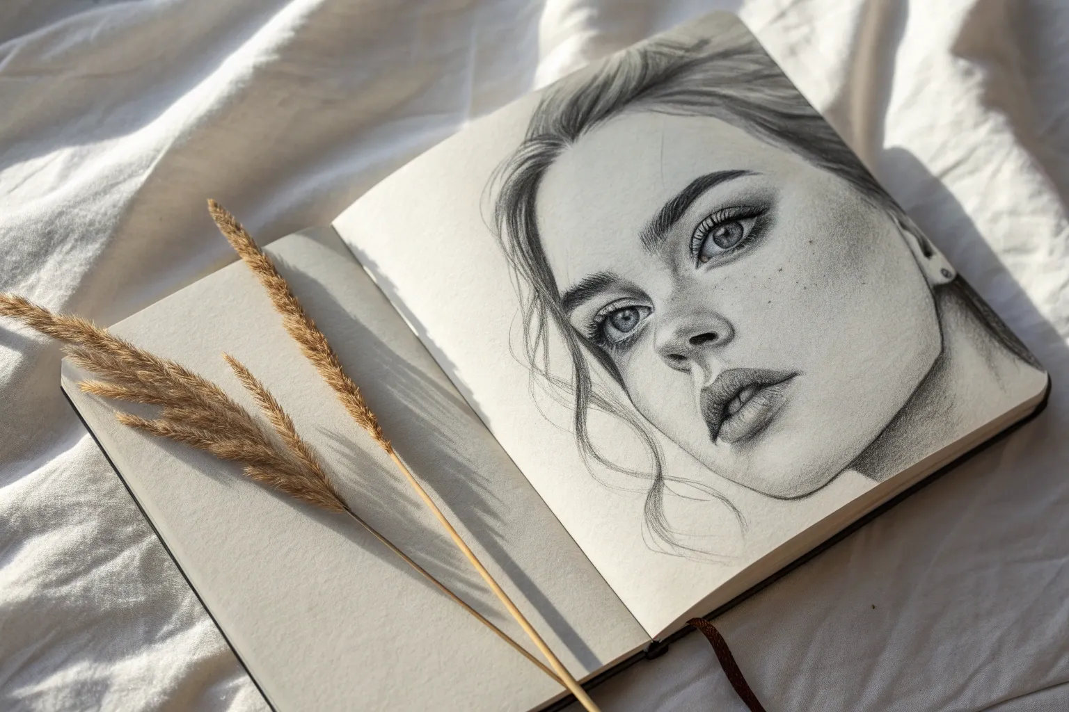 For a mixed-media twist, lightly brush watercolor over the hair or lips. Keep the pencil graphite visible underneath for a stylish, illustrative effect.