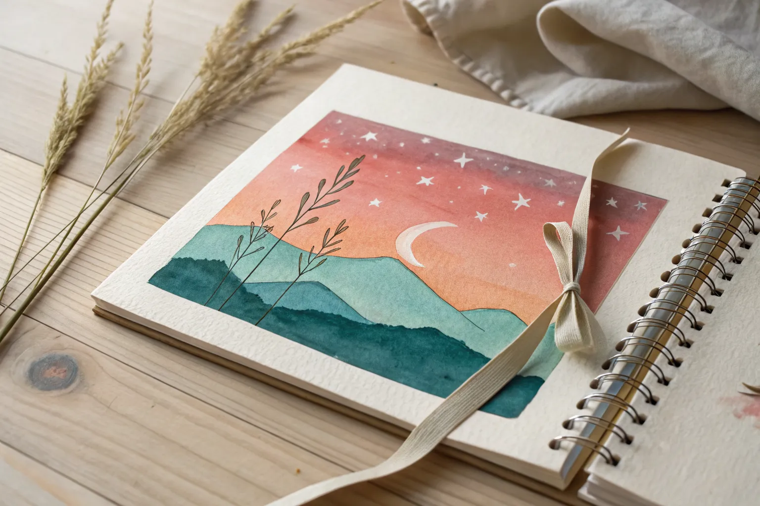 Use gold watercolor or a metallic gold paint pen for the celestial details (moons and stars) to add a shimmering, luxurious finish to your spread.