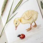 Capture the delicate charm of spring with this watercolor tutorial featuring a fluffy yellow duckling standing amidst scattered petals. Using soft washes and careful layering, you will build up the texture of the downy feathers to create a lifelike and heartwarming classic illustration.