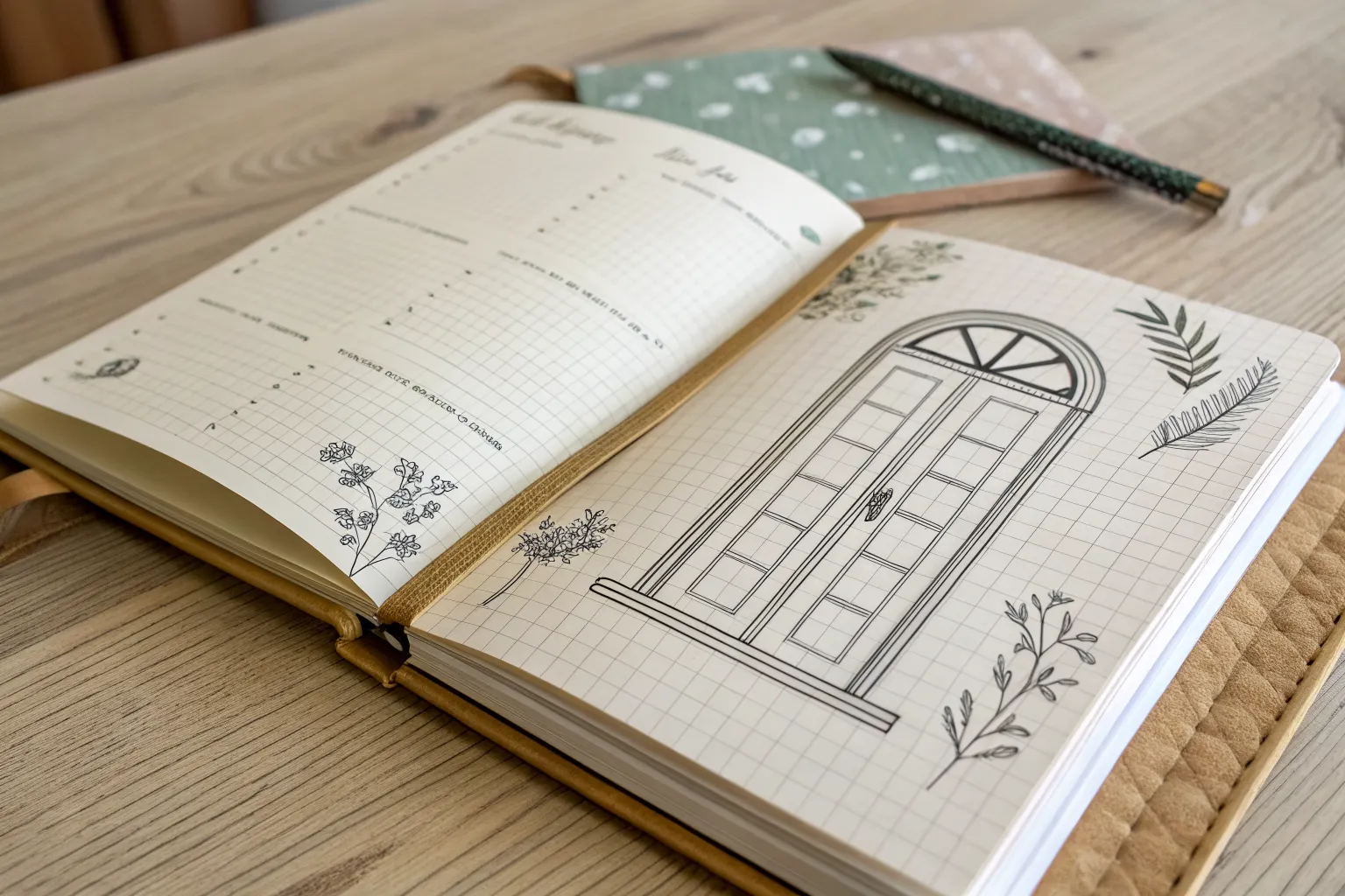 Capture the charm of classic carpentry with this crisp architectural sketch of a paneled door. Using fine liners on toned paper creates a warm, rustic aesthetic that emphasizes clean lines and rigorous perspective.
