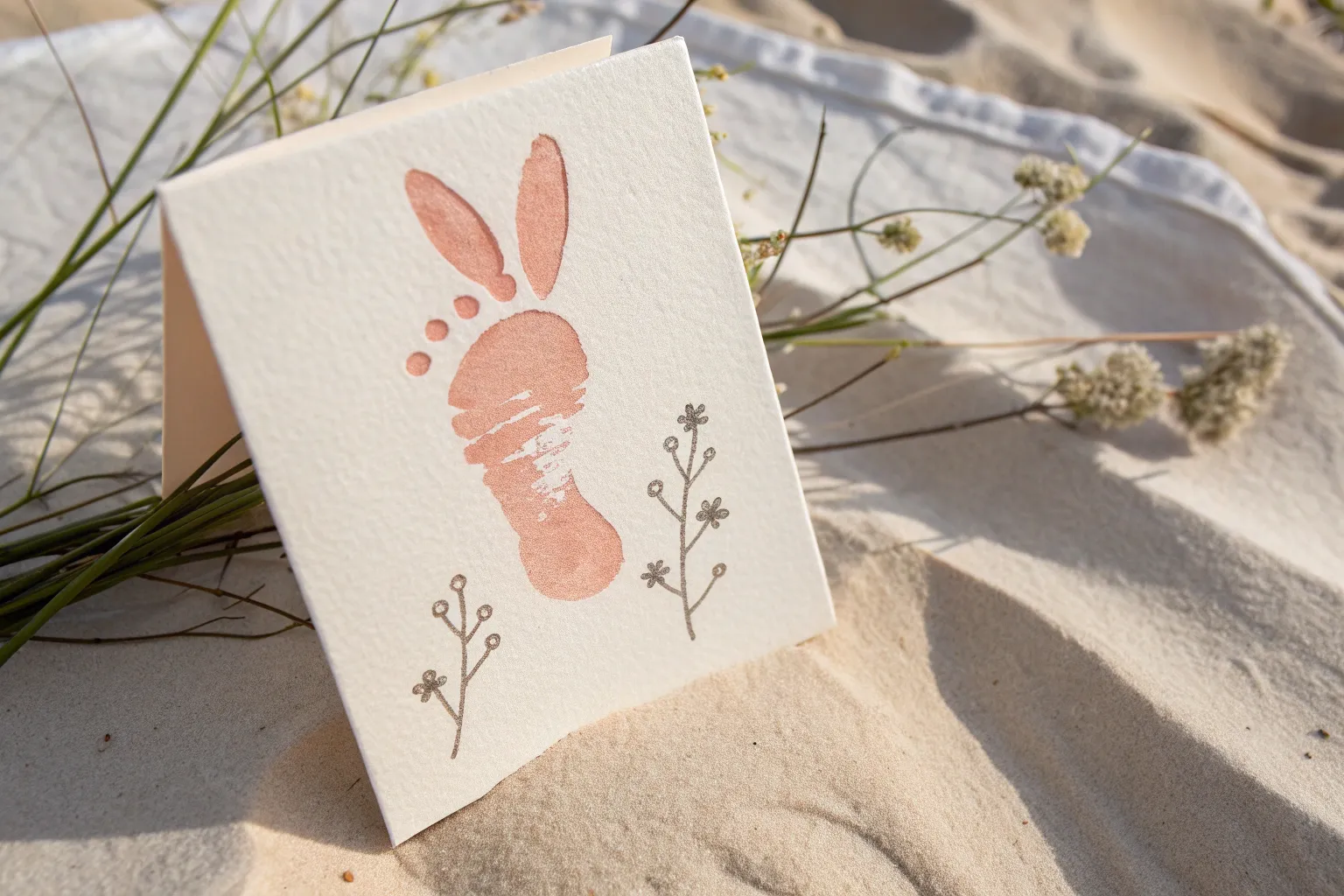 Transform a tiny footprint into an adorable Easter keepsake with this simple yet striking project. The gentle gray tones and minimalist line art give this artwork a modern, clean look that’s perfect for framing or gifting.