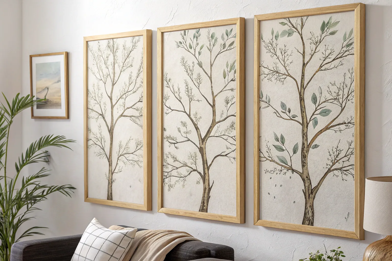 Hang your panels with even spacing to let the design breathe across the wall