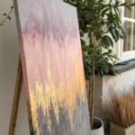 While the yellow is still wet, introduce a soft orange or coral pink right next to it, blending the edges gently so they fuse without hard lines. -