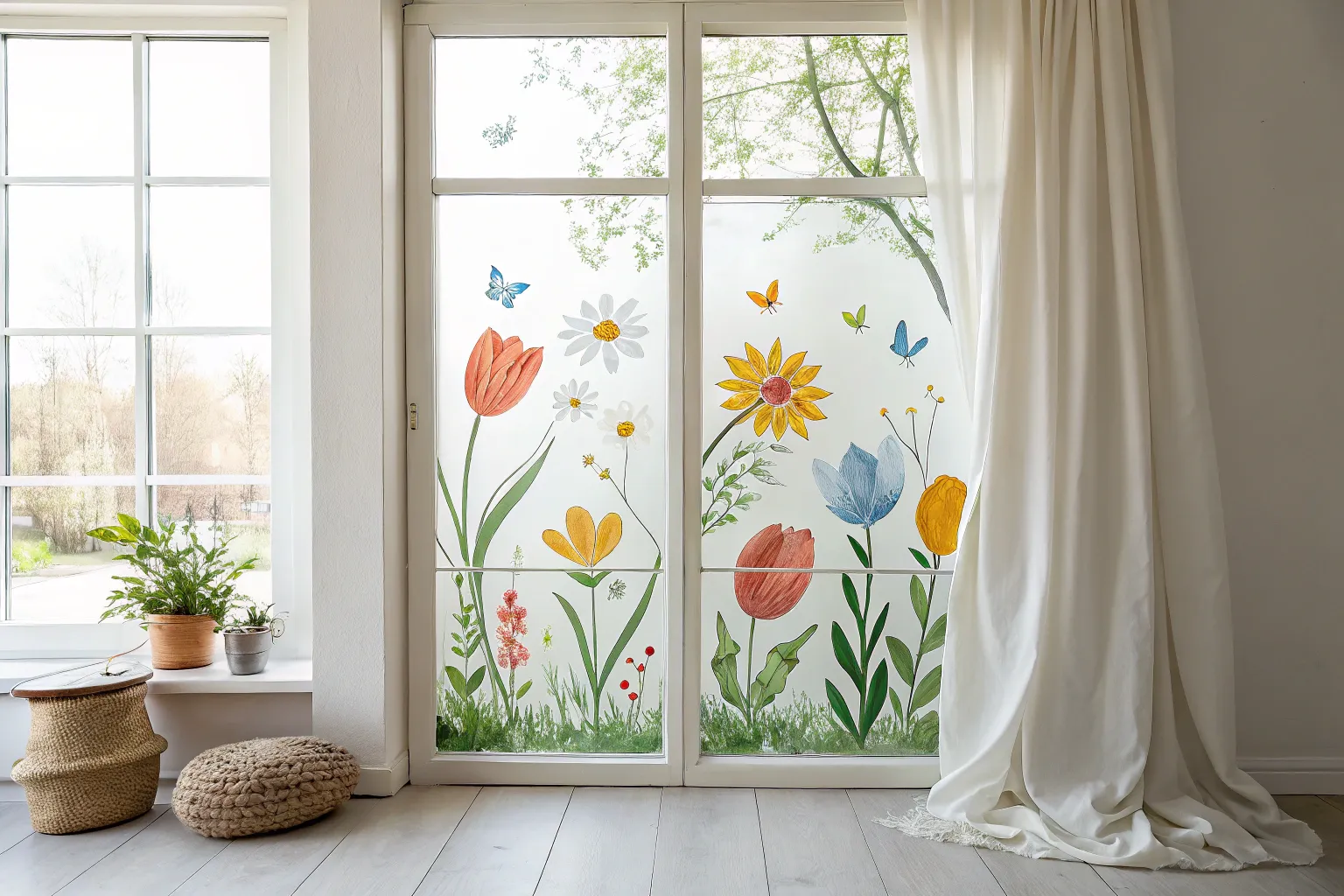 Transform your view into a permanent spring meadow with these oversized, cheerful daisies painted directly onto the window glass. This project uses simple brushstrokes to create elegant, swaying stems and bright white blooms that pop beautifully against the outdoor scenery.