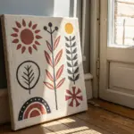 - Watercolors or gouache (ochre, terracotta, teal, gold, brown)
