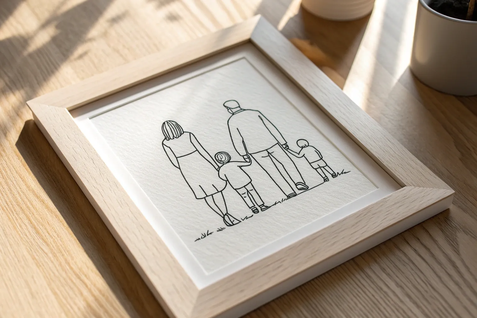 Create a unified gallery of minimalist portraits that celebrates imperfect lines and collaborative creativity. This project results in a stunning framed quartet of line drawings, perfect for capturing the essence of family members or friends in a modern, illustrative style.
