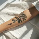 From the base of the design, sketch thin, curving stems that grow upwards and outwards, framing the main symbol. Let them intertwine slightly with the lower petals.