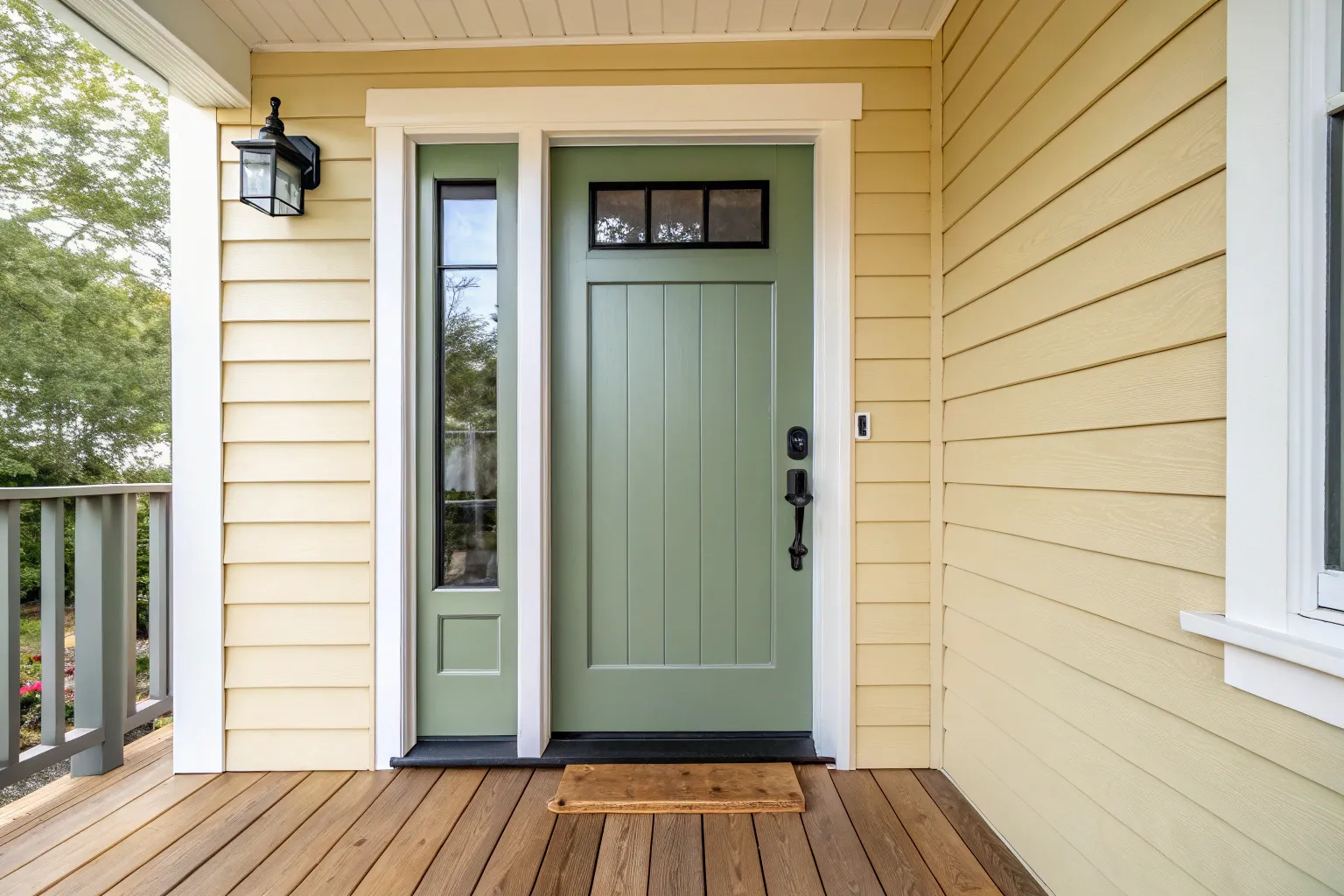 Creamy off-white porch paint glows in afternoon light for a warm, welcoming entry.