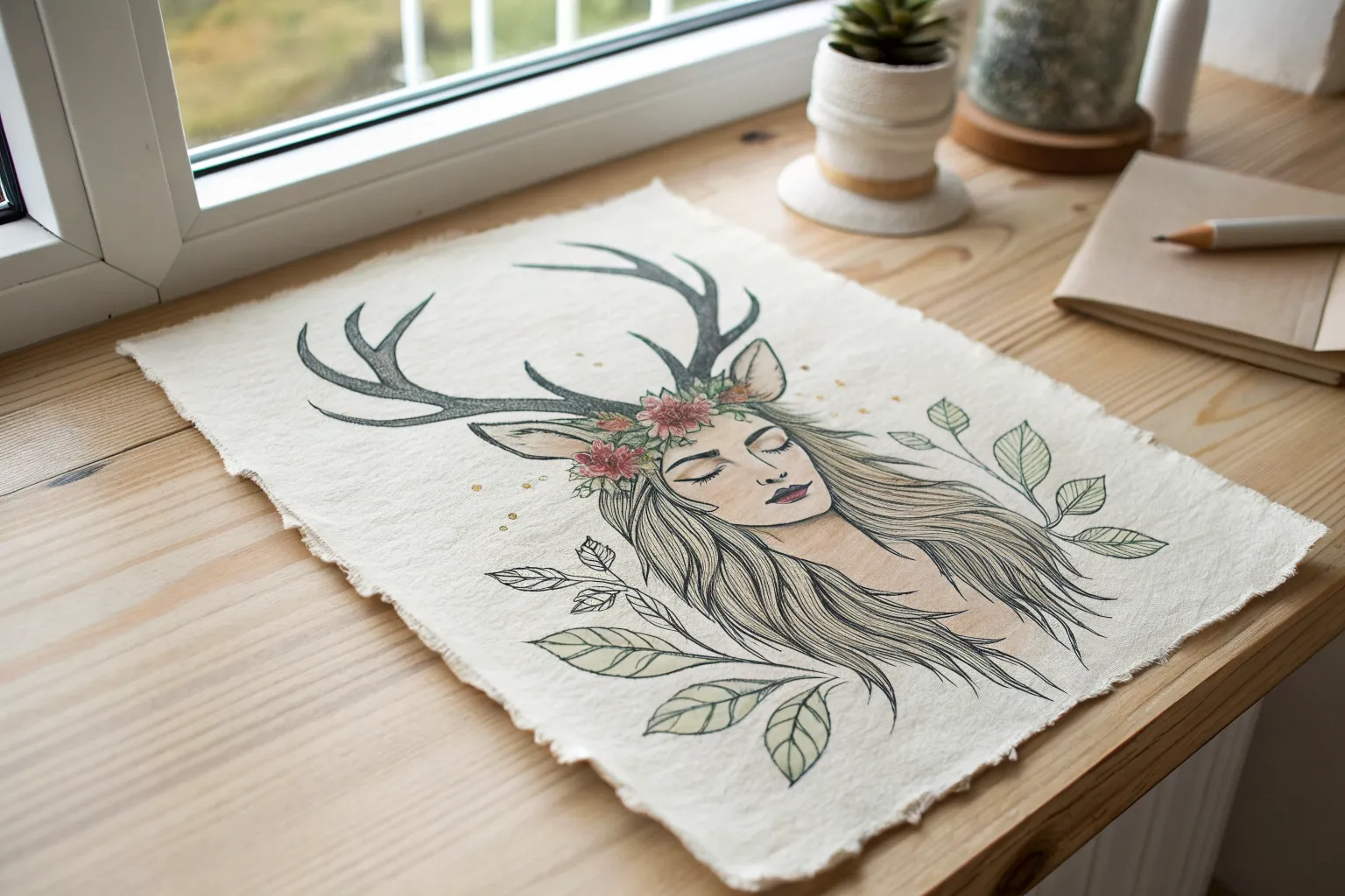 This whimsical illustration blends the fiery coat of a red fox with the flowing elegance of a koi fish, symbolizing the harmony between earth and water. Using fine liners and colored pencils, you’ll create a surreal creature that seems to swim through the air, surrounded by delicate cherry blossoms.