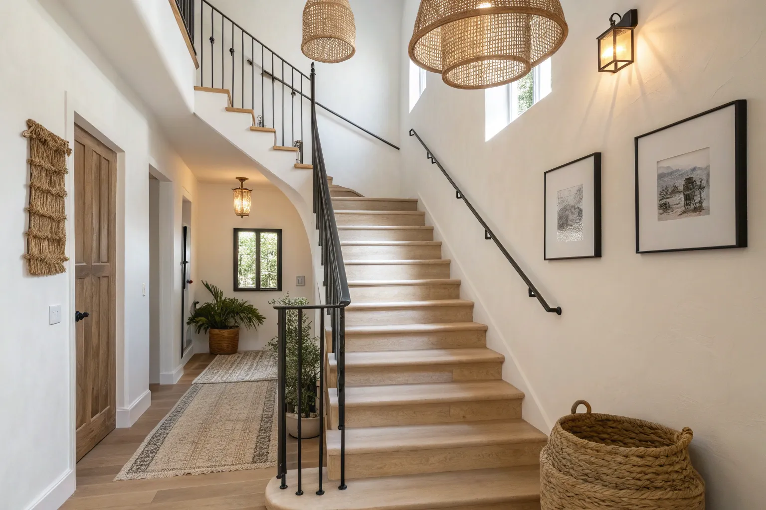 Stairwells are such an underrated canvas—one minute you’re just passing through, and the next you’re standing there admiring the vibe. With a few thoughtful choices in color, art placement, and light, you can turn that in-between space into a real focal point.