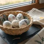 For extra texture, you can flick a tiny amount of cream paint off a stiff brush to create micro-splatters on the green sections, though keep this minimal.