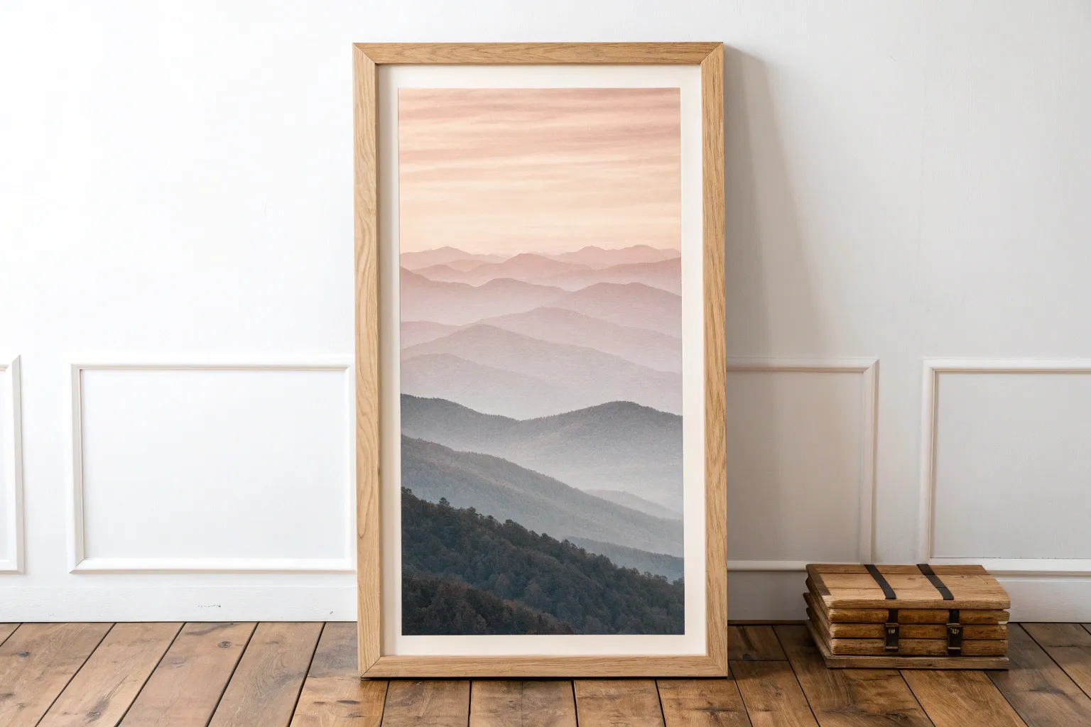 Bring the serene majesty of a misty forest indoors with this massive, statement-making vertical art piece. This project transforms a high-resolution digital print into a high-end, custom-framed masterpiece that creates a stunning visual window in any hallway or narrow wall.