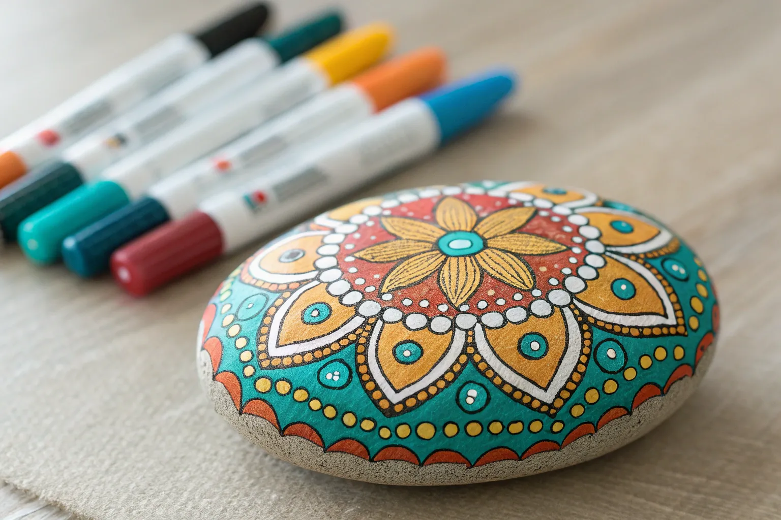 - Paint markers (fine tip: teal, rust orange, coral pink, cream/white, dark blue)