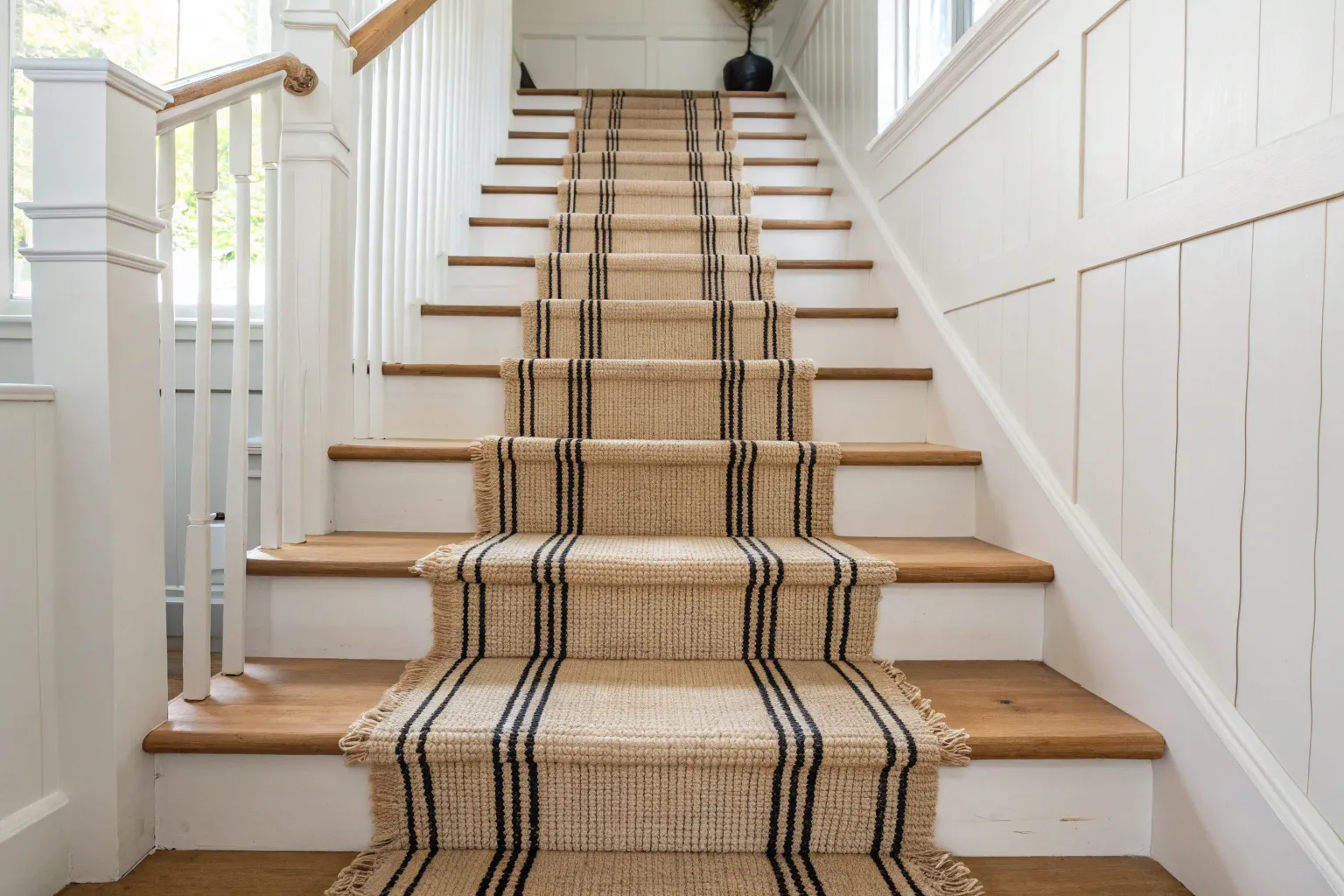 - Stair runner (neutral stripe pattern, woven sisal or wool blend)