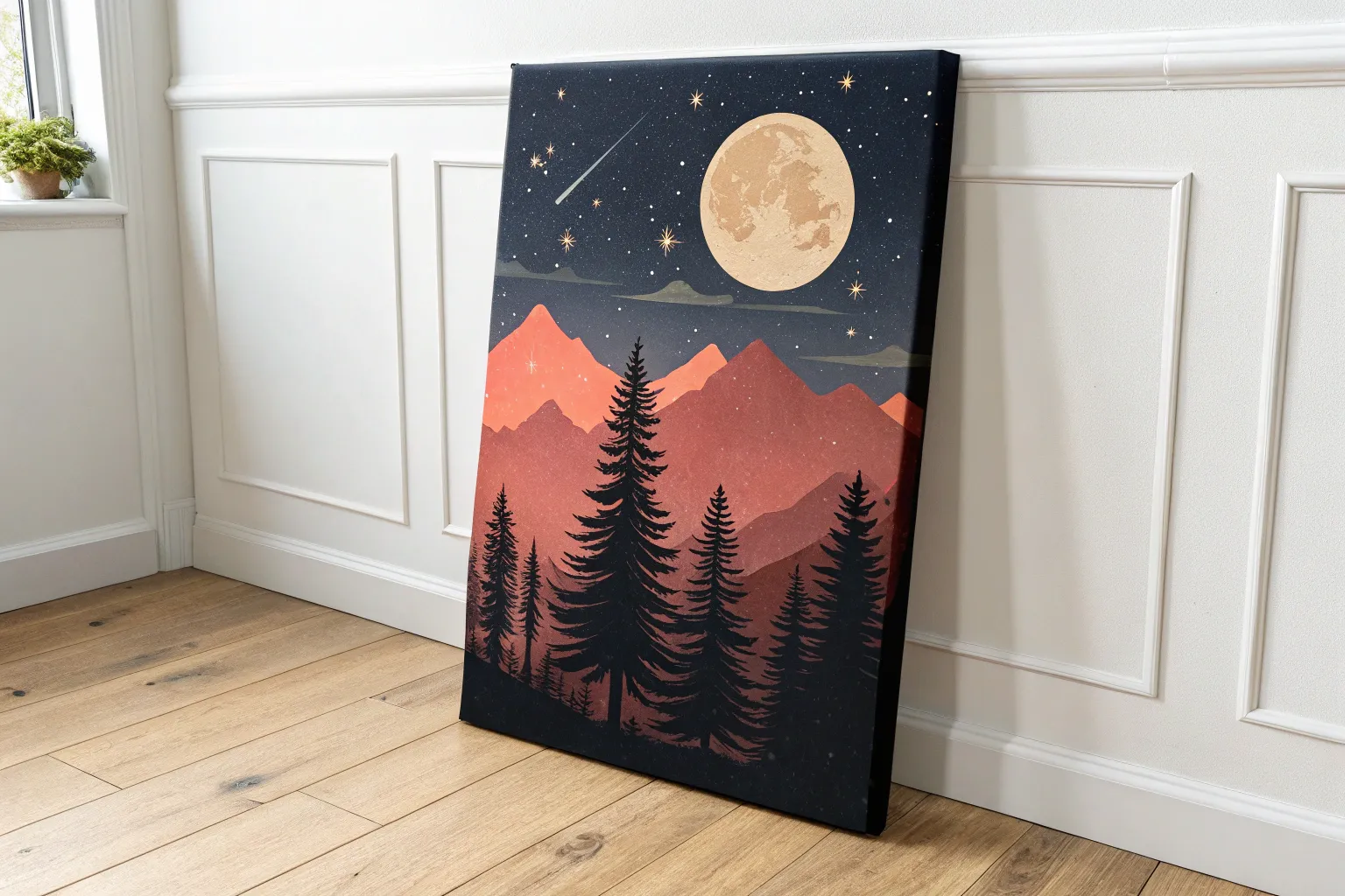 Place your finished mini-masterpiece on a small easel or shelf to add a peaceful night vibe to your room