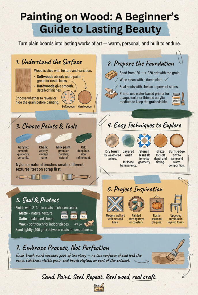 Painting on wood can turn a plain board into something striking and personal. With a modest toolkit and attention to surface preparation, almost anyone can achieve results that look polished, dimensional, and durable.