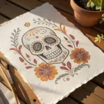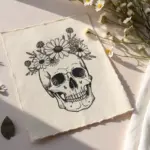 This project blends the potentially darker imagery of a skull with soft, vibrant botanicals for a striking contrast. You’ll create a stylized skull with large, expressive eye sockets, framing it with wildflowers and poppies in warm coral and peach tones.