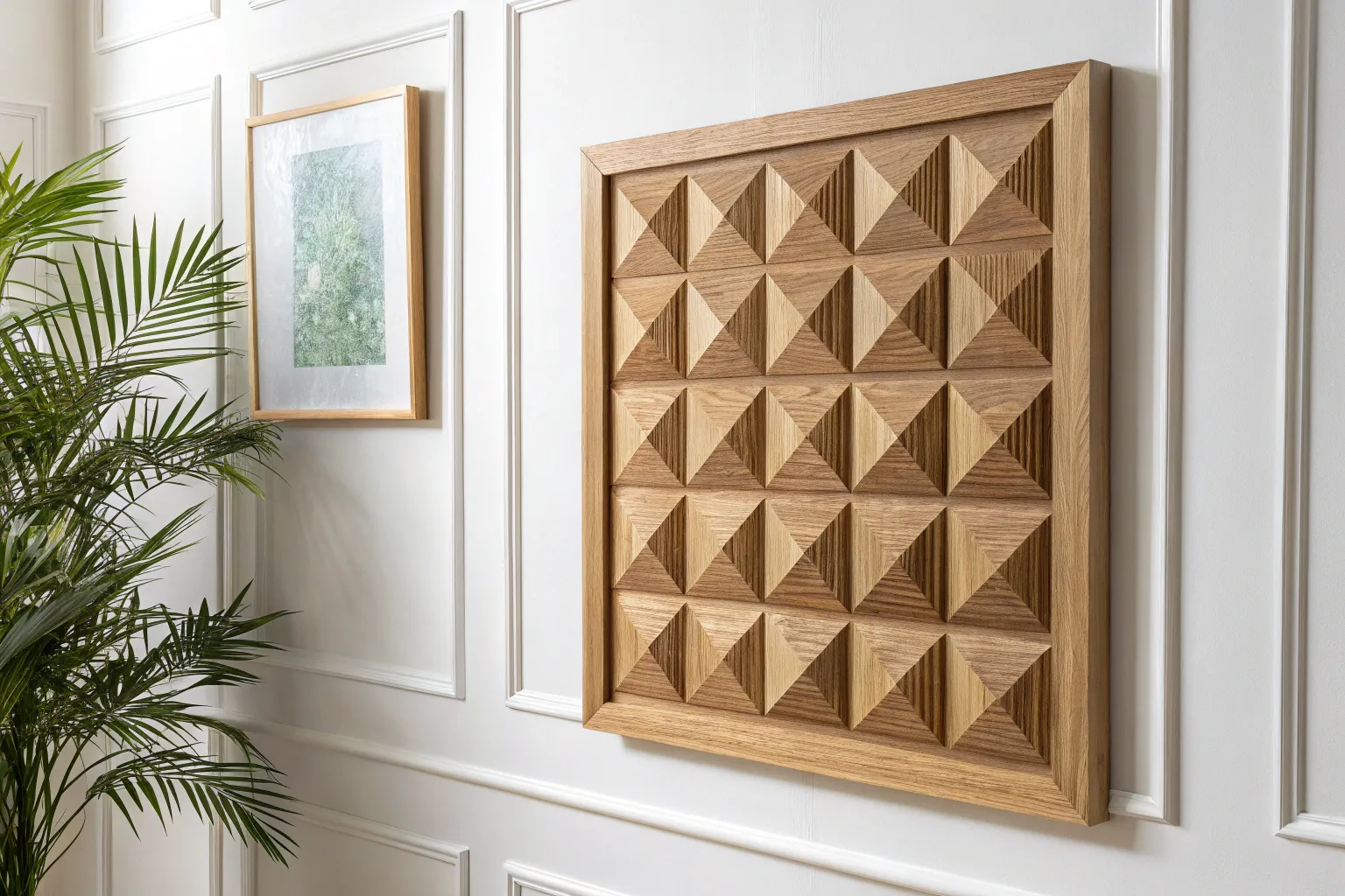 Measure your intended wall space carefully. For the 4×4 grid shown in the image, you need a square base relative to the size of your pyramid inserts. A 4-foot by 4-foot total panel works well with 10-inch square inserts allowing for framing.