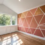 This design relies on an invisible grid system. Using a pencil and a long straight edge (or laser level), lightly mark out large squares across the wall. These squares will act as the boundaries for your geometric shapes. -