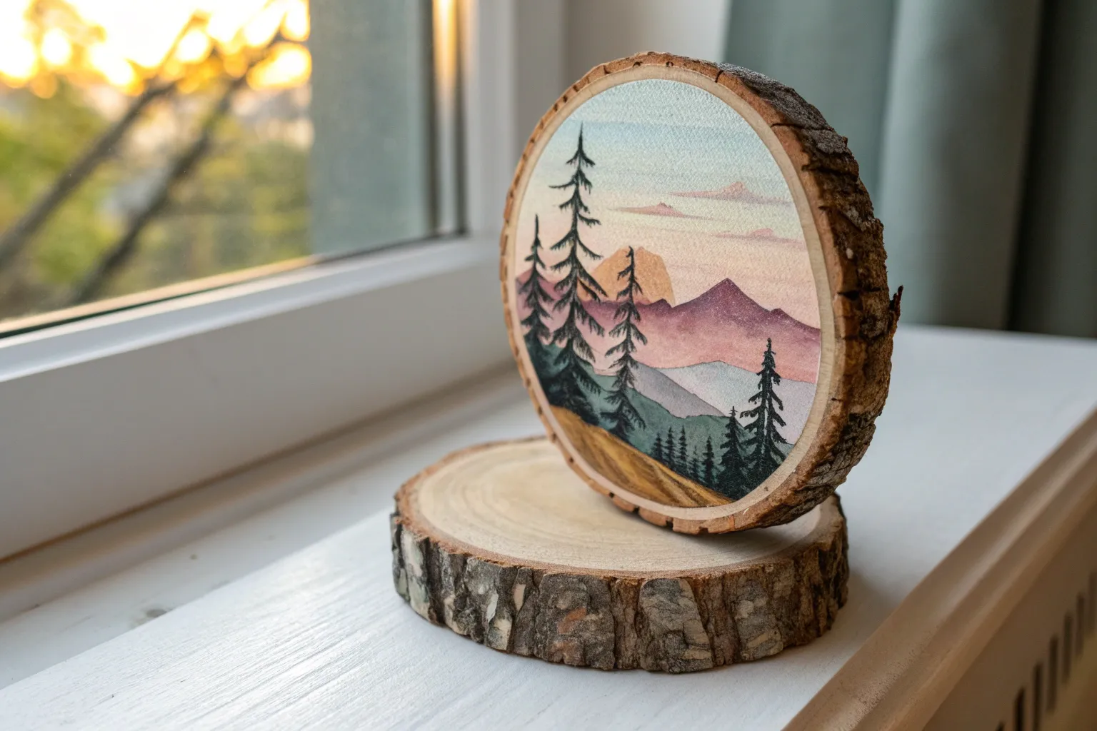 Begin by lightly sanding the top surface of each wood slice. You want it smooth enough for a brush to glide without catching on splinters, but retain enough texture to look natural. Wipe away every speck of dust with a damp cloth or tack cloth before proceeding.