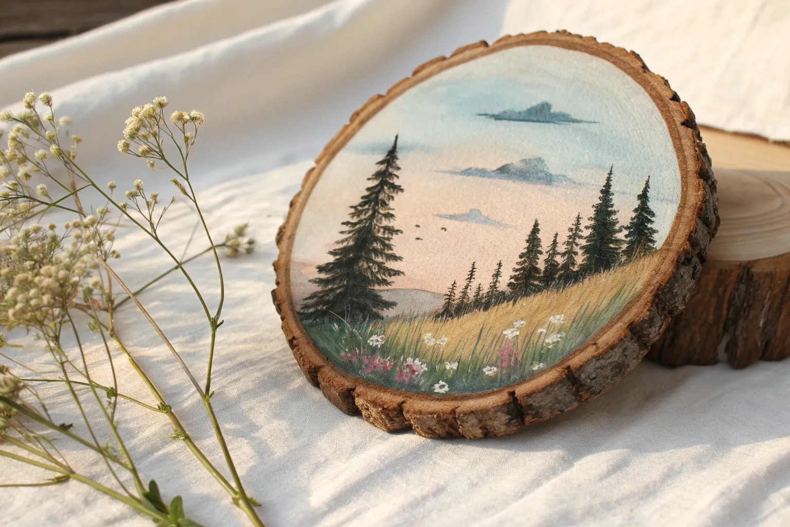 I love painting on wood slices because that little circle instantly turns your idea into a charming, finished-looking piece of art. The natural bark edge does so much of the framing for you, so even simple mini scenes feel special and gift-ready.