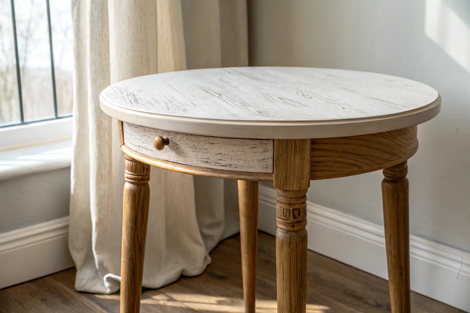 Transform an outdated pedestal table into a bright, airy centerpiece with this layered whitewash technique. The finish combines a sturdy, solid white base with a soft, weathered wood top that highlights the natural grain while keeping the look fresh and modern.