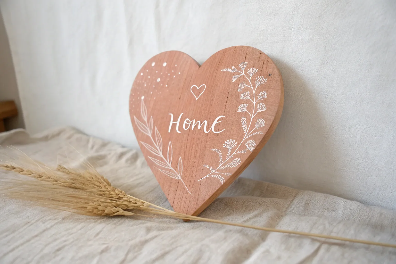 For the large heart, choose a contrasting base color if you want a two-tone distress, or stick to raw wood for a natural look. If painting a base, apply a thin coat of baby pink or peach let it dry completely. -